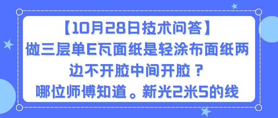 | 做三层单E瓦面纸是轻涂布面纸两边不开胶中间开胶。哪位师傅知道。新光2米5的线。 | |||